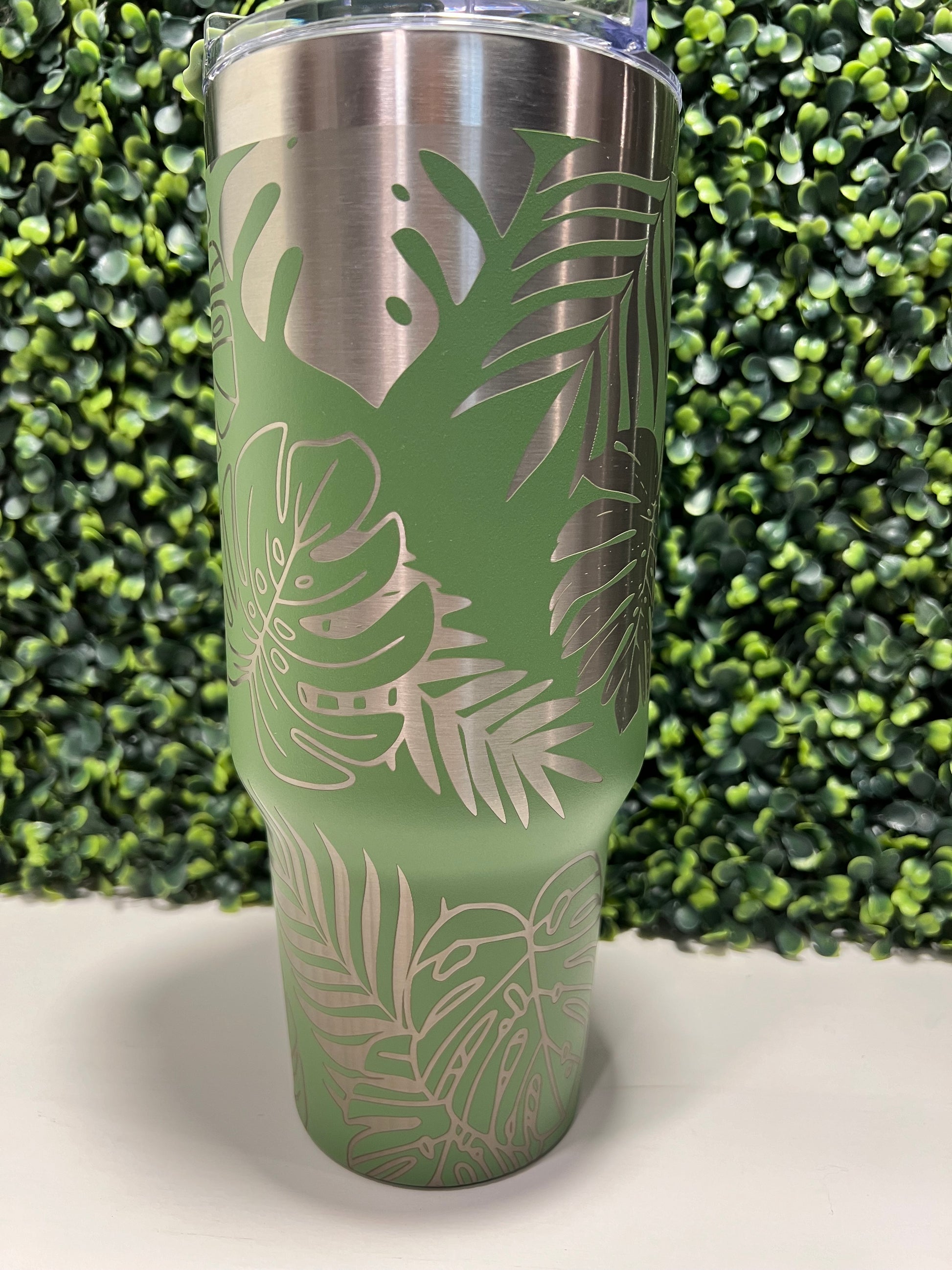 Green 40oz Monstera Leaf Laser Engraved Tumbler